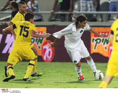 Πρόβλημα στον άξονα και στα άκραΟ Παναθηναϊκος αντιμετώπιζε πρόβλημα στην μεσαία γραμμή, αφού οι Κατσουράνης (κυρίως) και Νίνης ήταν... άφαντοι και δεν μάρκαραν, ο Σιμάο μόνος του δεν μπορούσε να ανακόψει τις επιθέσεις των Ισραηλινών, ενώ και οι Σπυρόπουλος, Βύντρα στα άκρα είχαν να αντιμετωπίσουν πολλές φορές δύο και τρεις παίκτες που έβγαιναν από τις πτέρυγες.